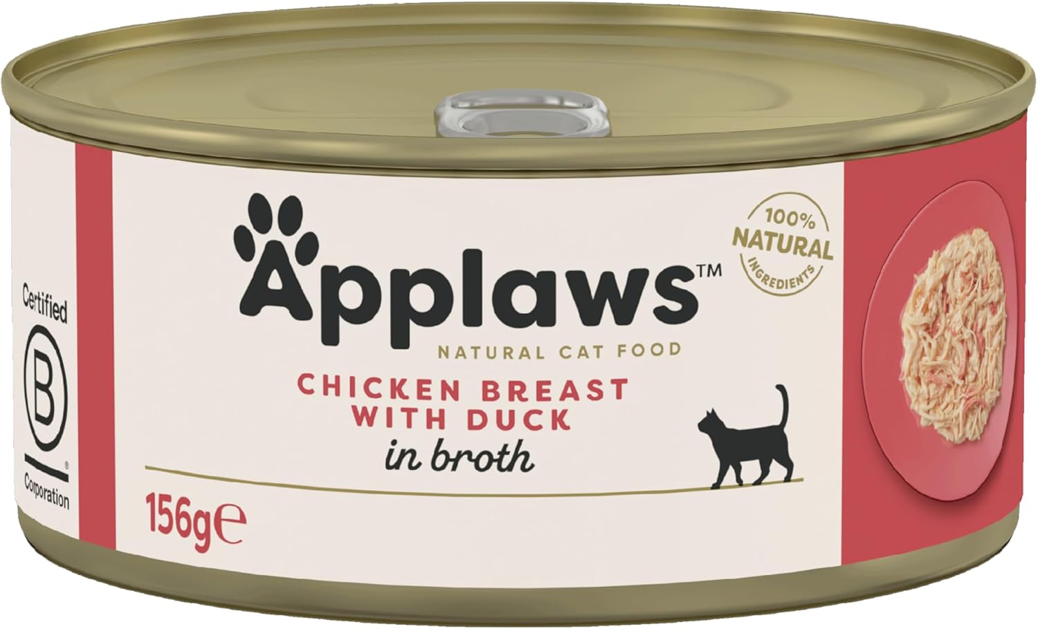Applaws 100% Natural Wet Cat Food, Chicken With Duck In Broth For Adult Cats - Pack Of 24 X 156 Tins2025Ne-A