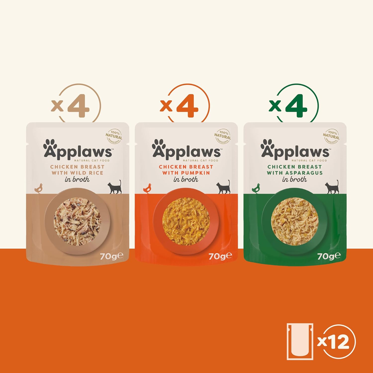 Applaws 100% Natural Wet Cat Food, Pouch Multipack Chicken Selection In Broth 70G, (12 X 70 G Pouches)8252Ce-A