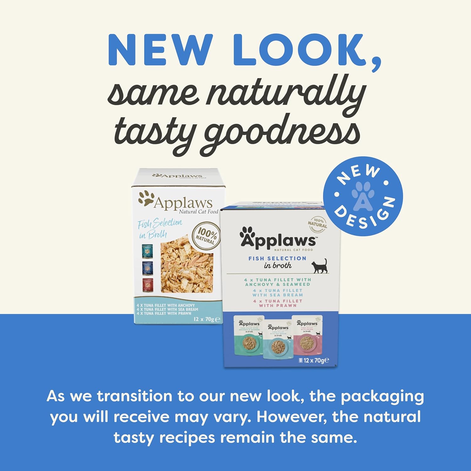 Applaws 100% Natural Wet Cat Food, Pouch Multipack Tuna Selection In Broth, 70 G (12 X 70 G Pouches)8015Ml-A