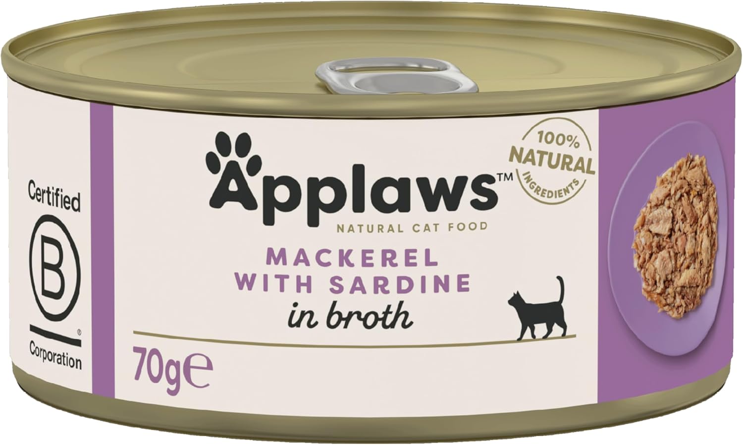 Applaws 100% Natural Wet Cat Food Tins, Mackerl With Sardine In Broth 70 G For Adult Cats (24 X 70 G Tins)9104963