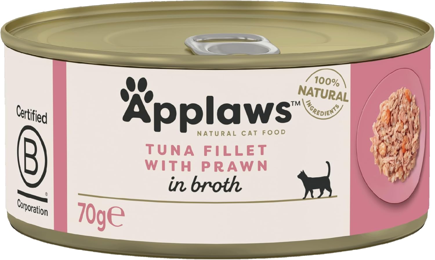 Applaws 100% Natural Wet Cat Food, Tuna Fillet With Prawn, 156G (Pack Of 24)2008Ne-A