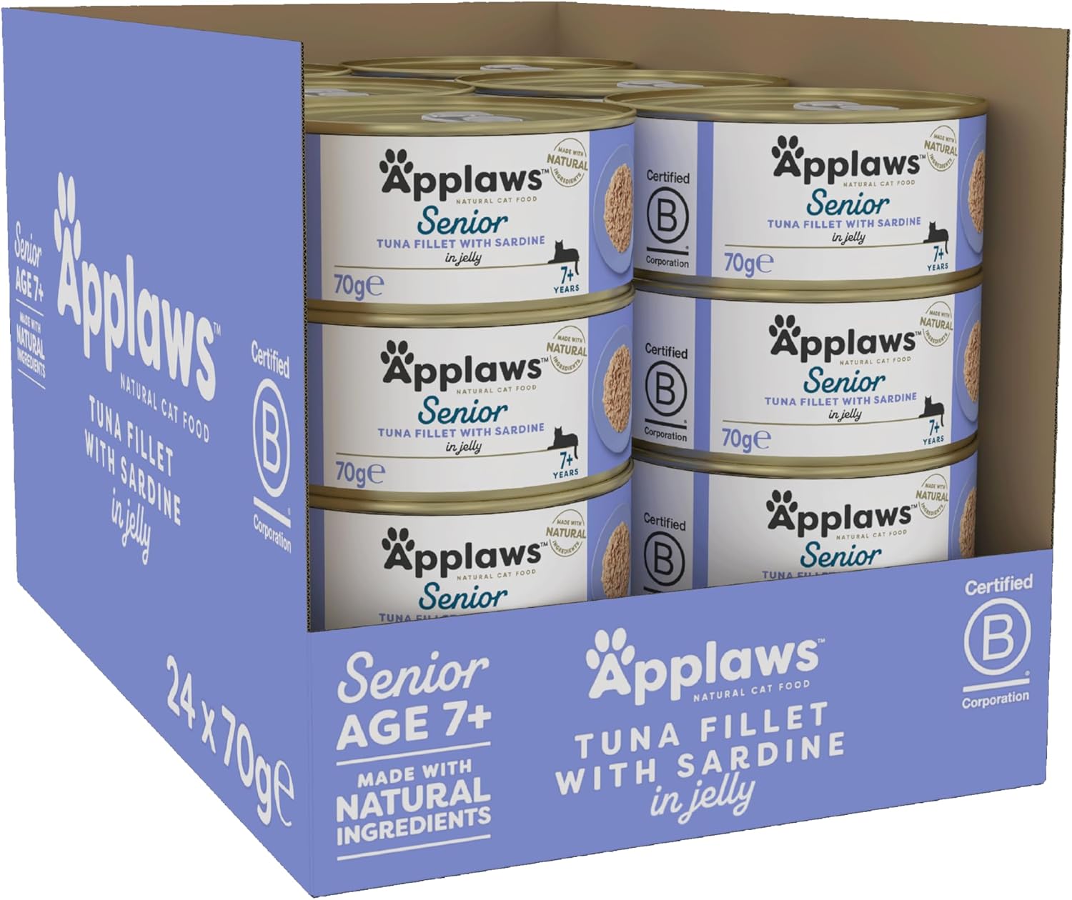 Applaws Natural Senior Wet Cat Food, Tuna With Sardines In A Soft Mousse 70G Tin(Pack Of 24 X 70G Tins)1331Ne-A