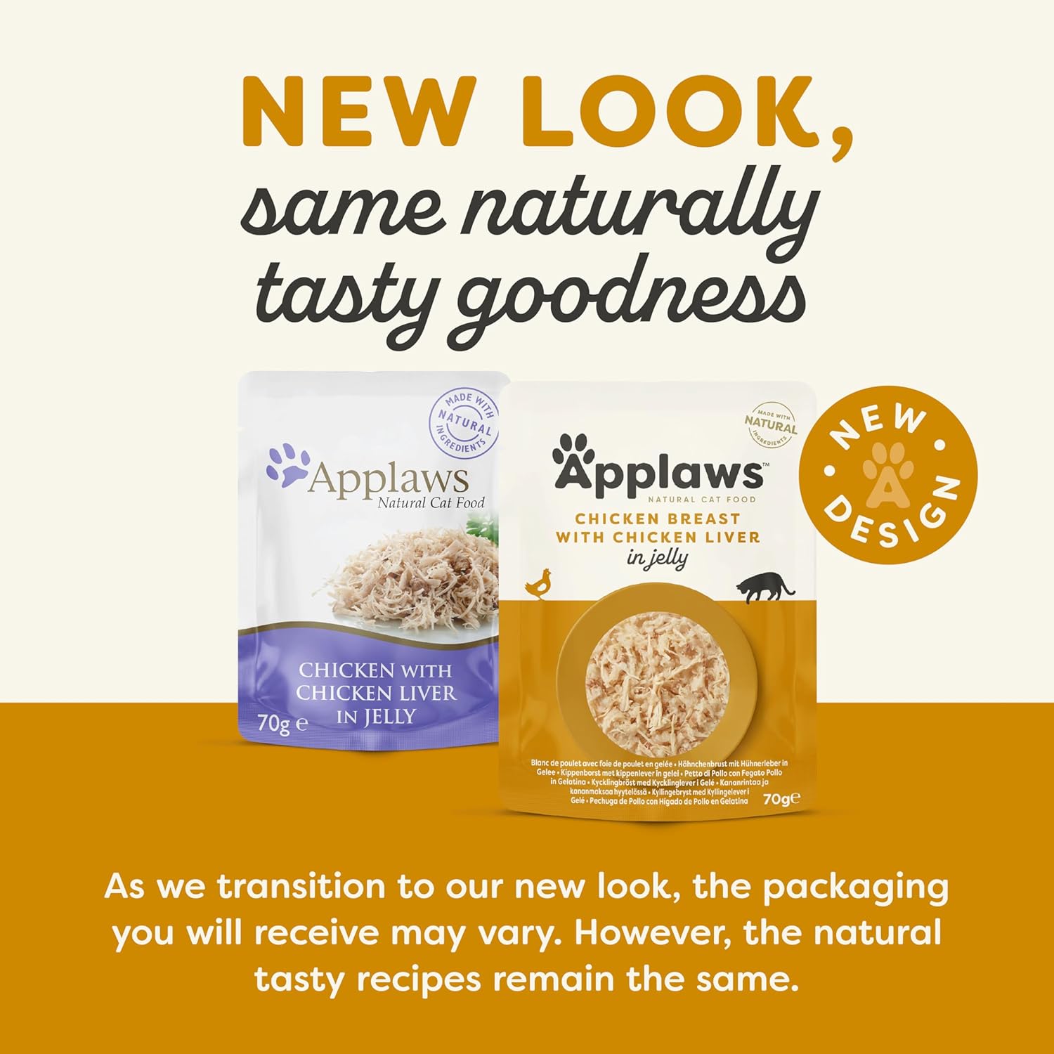Applaws Natural Wet Adult Cat Food, Chicken With Chicken Liver In Jelly, 70G Pouch (Pack Of 16 Pouches)8251Ml-A