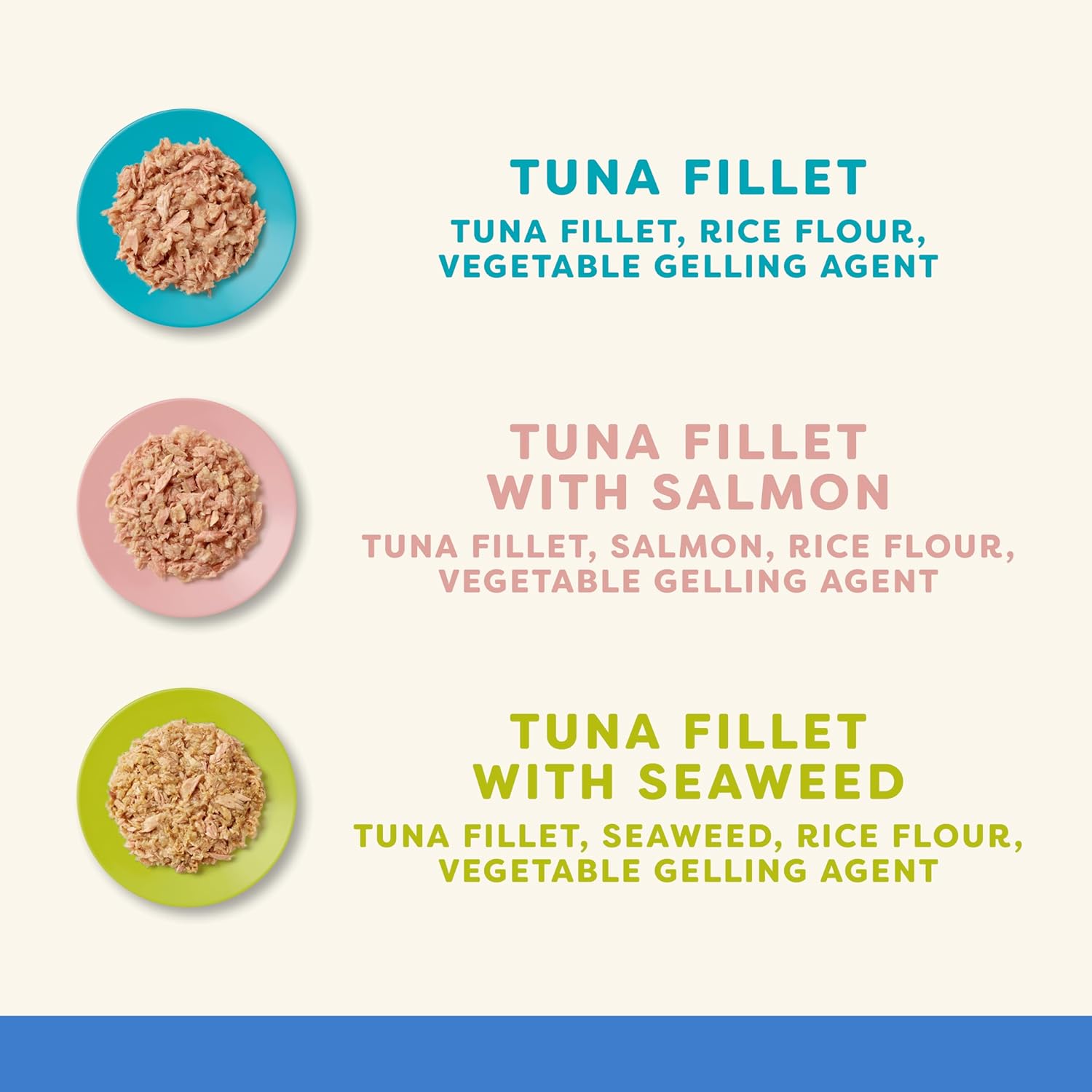 Pack of 12 x 70 g Fish Selection Multipack in Jelly Tins, Tuna Fillet, Tuna with Salmon and Tuna with Seaweed