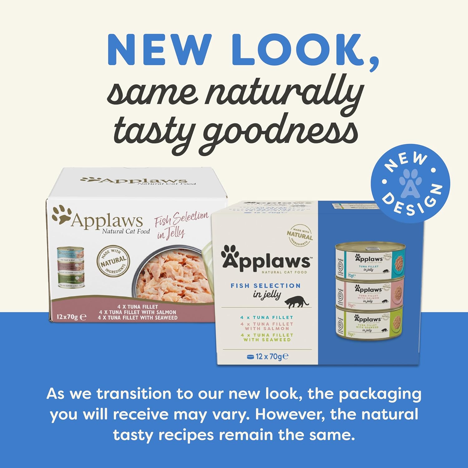 Applaws Natural Wet Adult Cat Food, Fish Selection In Jelly 70G Tin (Pack Of 12)1050Ml-A