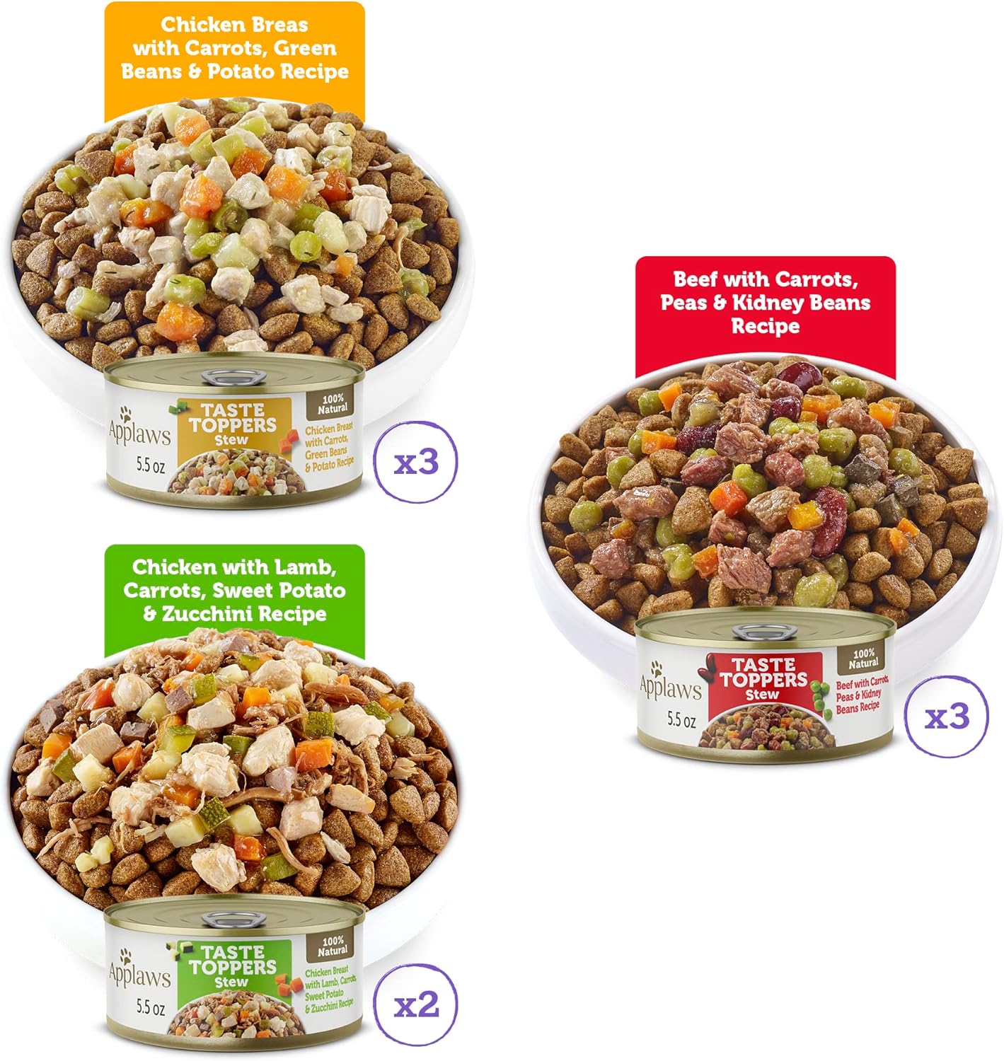Applaws Taste Toppers, Grain-Free Dog Food Topper, Limited Ingredient, Chicken & Lamb Stew With Carrot, Courgette & Sweet Potato (12 X 5.5Oz Cans)