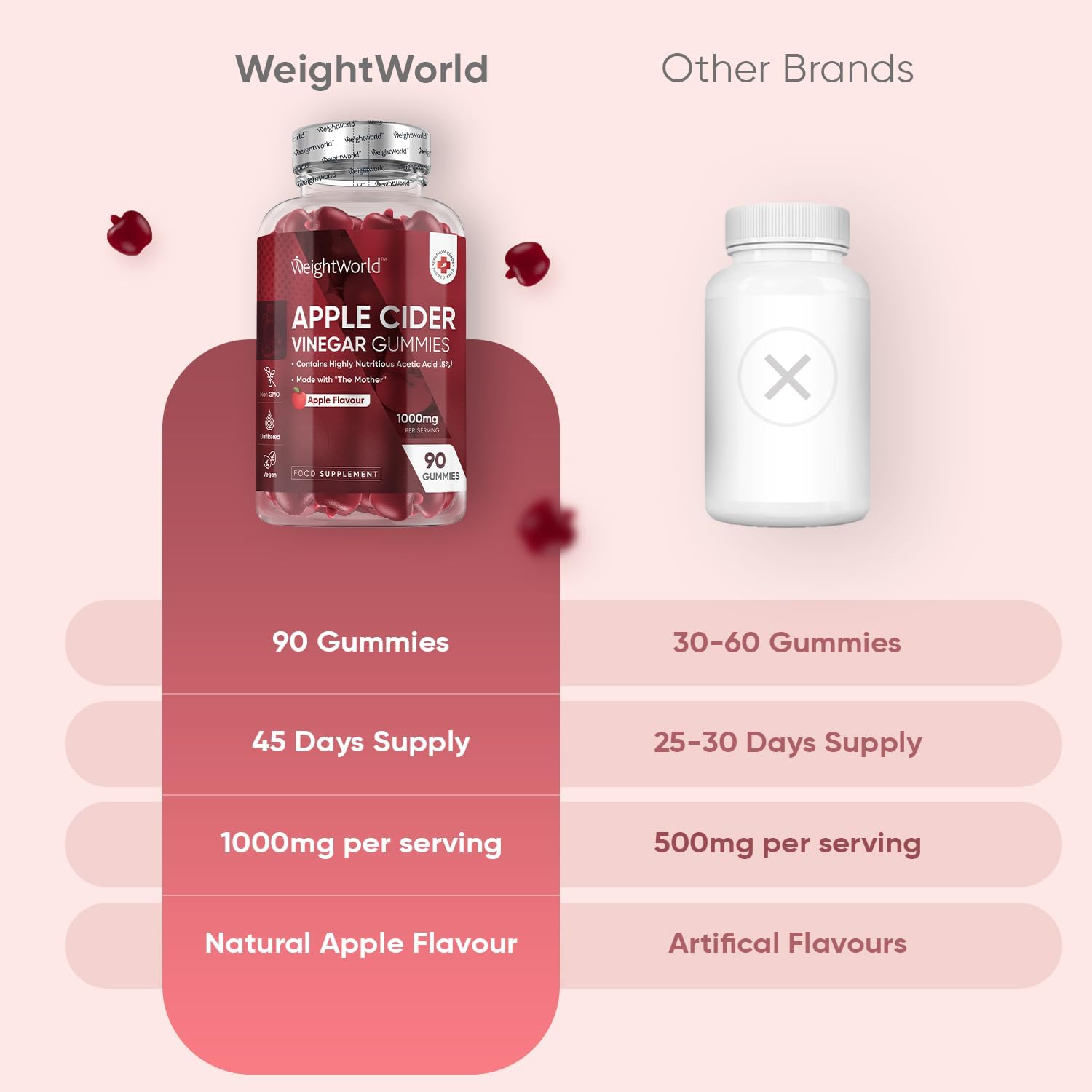 Apple Cider Vinegar Gummies 1000Mg - 90 Acv Gummies - With ''The Mother'', Vitamin C, B12, B6, B9 & Beetroot Powder - Vegan & Unfiltered