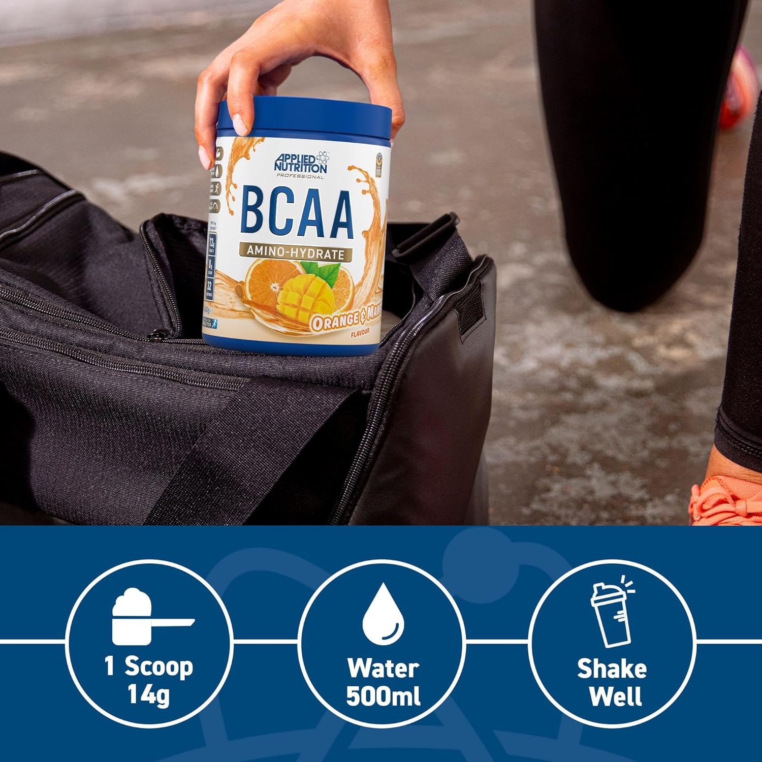 Applied Nutrition Bcaa Powder - Branched Chain Amino Acids Bcaas Supplement, Amino Hydrate Intra Workout & Recovery Energy Drink (450G - 32 Servings) (Orange & Mango)