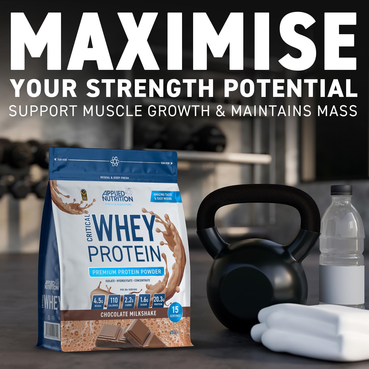 Applied Nutrition Critical Whey Protein Powder 450G - High Protein Powder, Protein Milkshake, Muscle Building Supplement With Bcaas & Glutamine (450G - 15 Servings) (Strawberry)