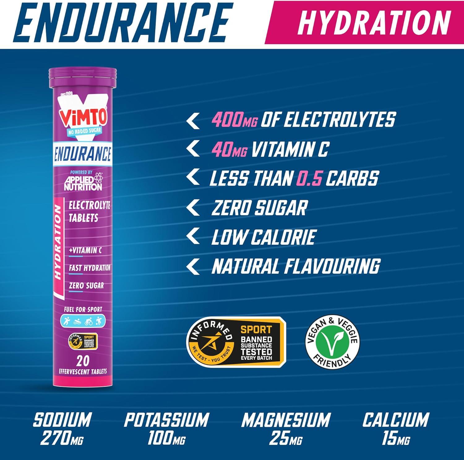 Applied Nutrition Endurance Hydration Electrolyte Tablets - 400Mg Electrolytes Per Serving – 120 Effervescent Tablets, Sugar Free, Low Calorie, Added Vitamin C Boost Performance – Orange