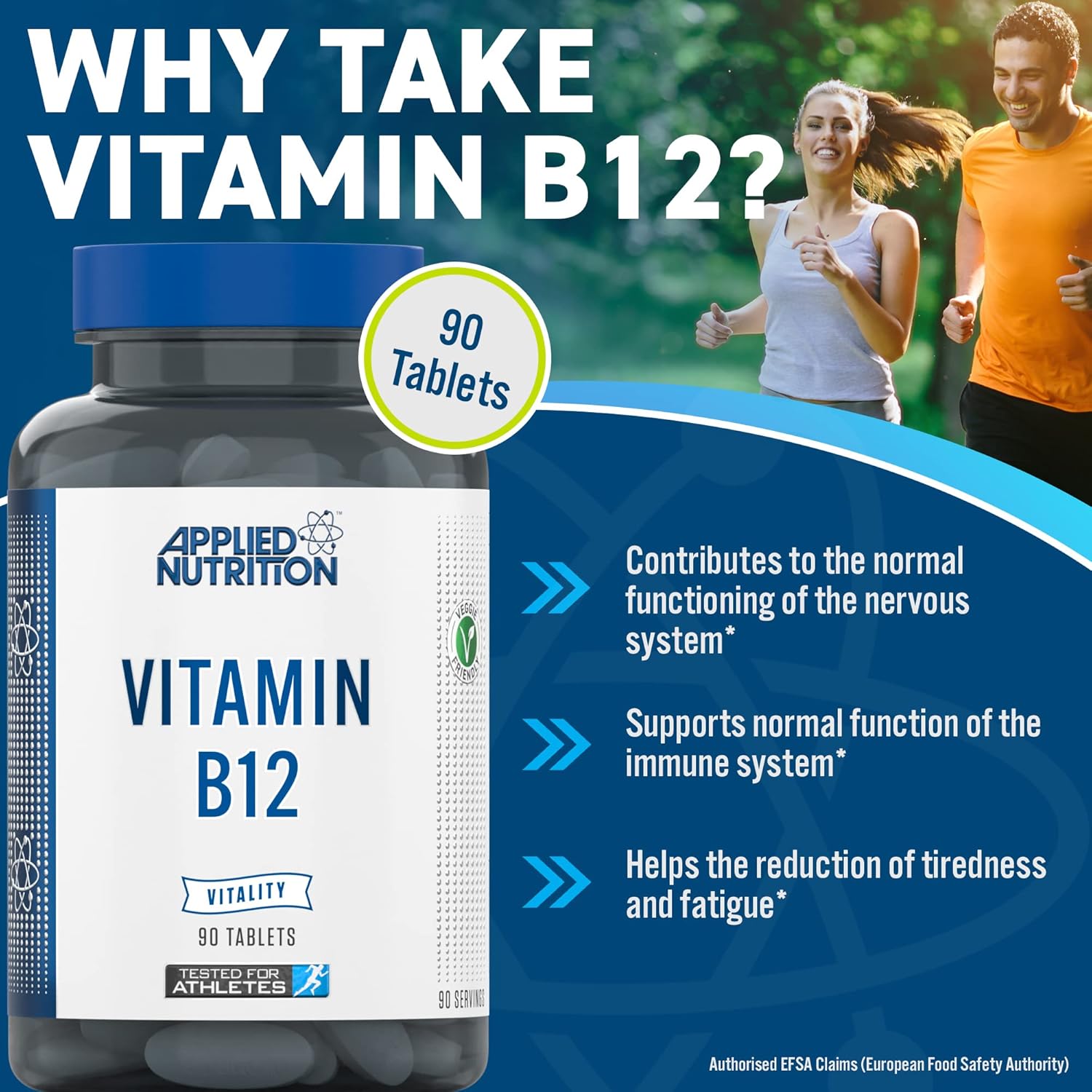 Applied Nutrition Vitamin B12 Tablets 1000Mcg - Immune System Support & Reduction Of Tiredness And Fatigue, Made In The Uk, Vegan (90 Tablets)