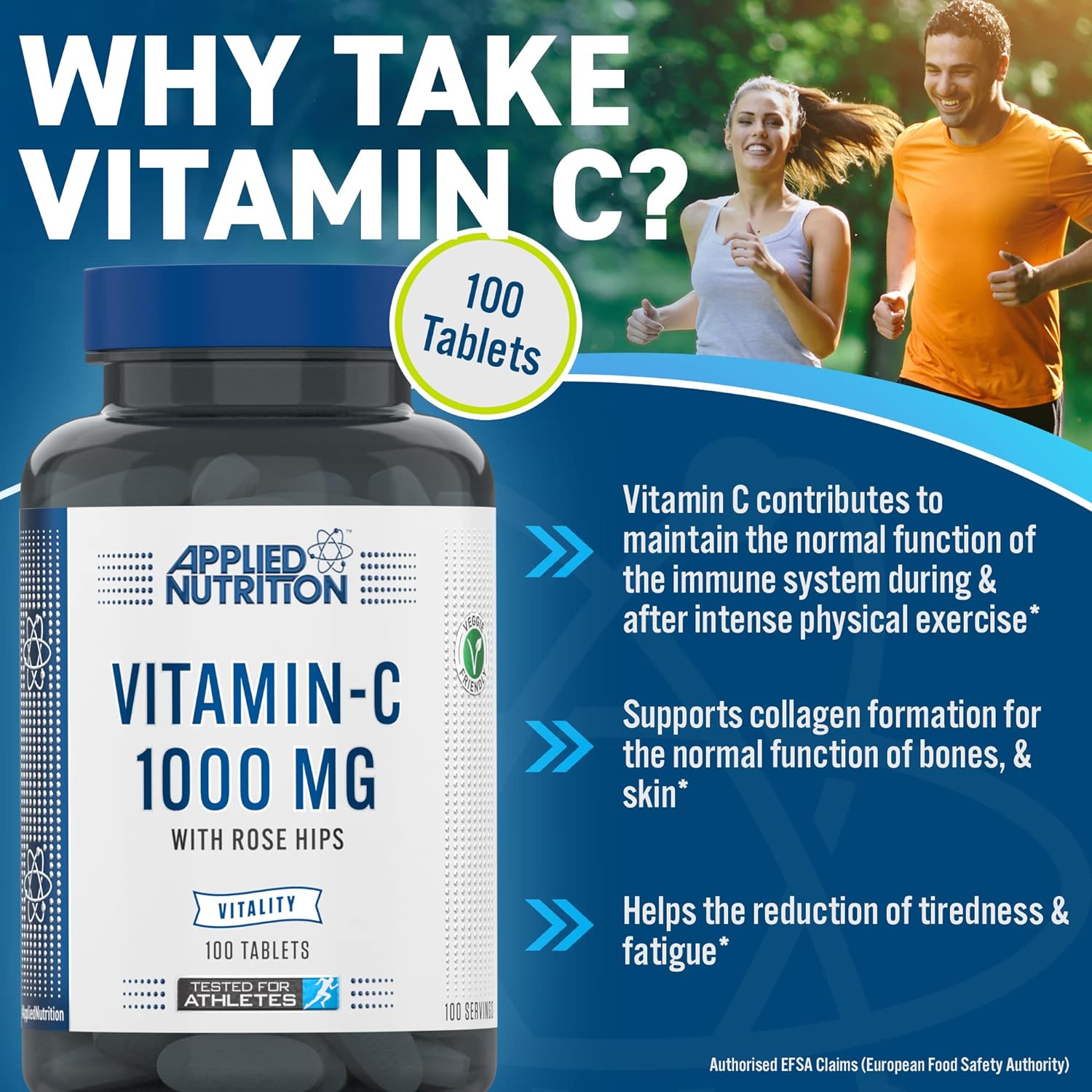 DESCRIPTION : Applied Nutrition Vitamin C 1000mg - L Ascorbic Acid With Rose Hips, Immune System Support, Made in the UK, Vegan (100 Tablets - 3 Months Supply)