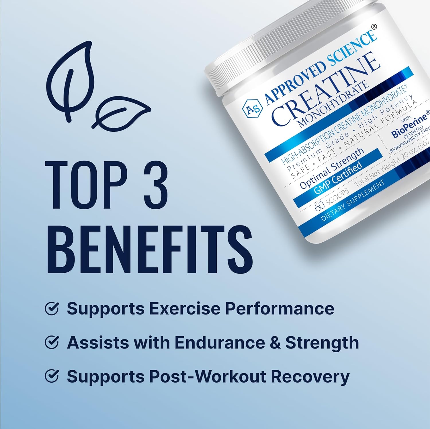 Approved Science Creatine Monohydrate Powder With Bioperine - Supports Lean Muscle Growth And Recovery - 60 Servings - 5G Per Serving - Unflavored - Non-Gmo, Vegan