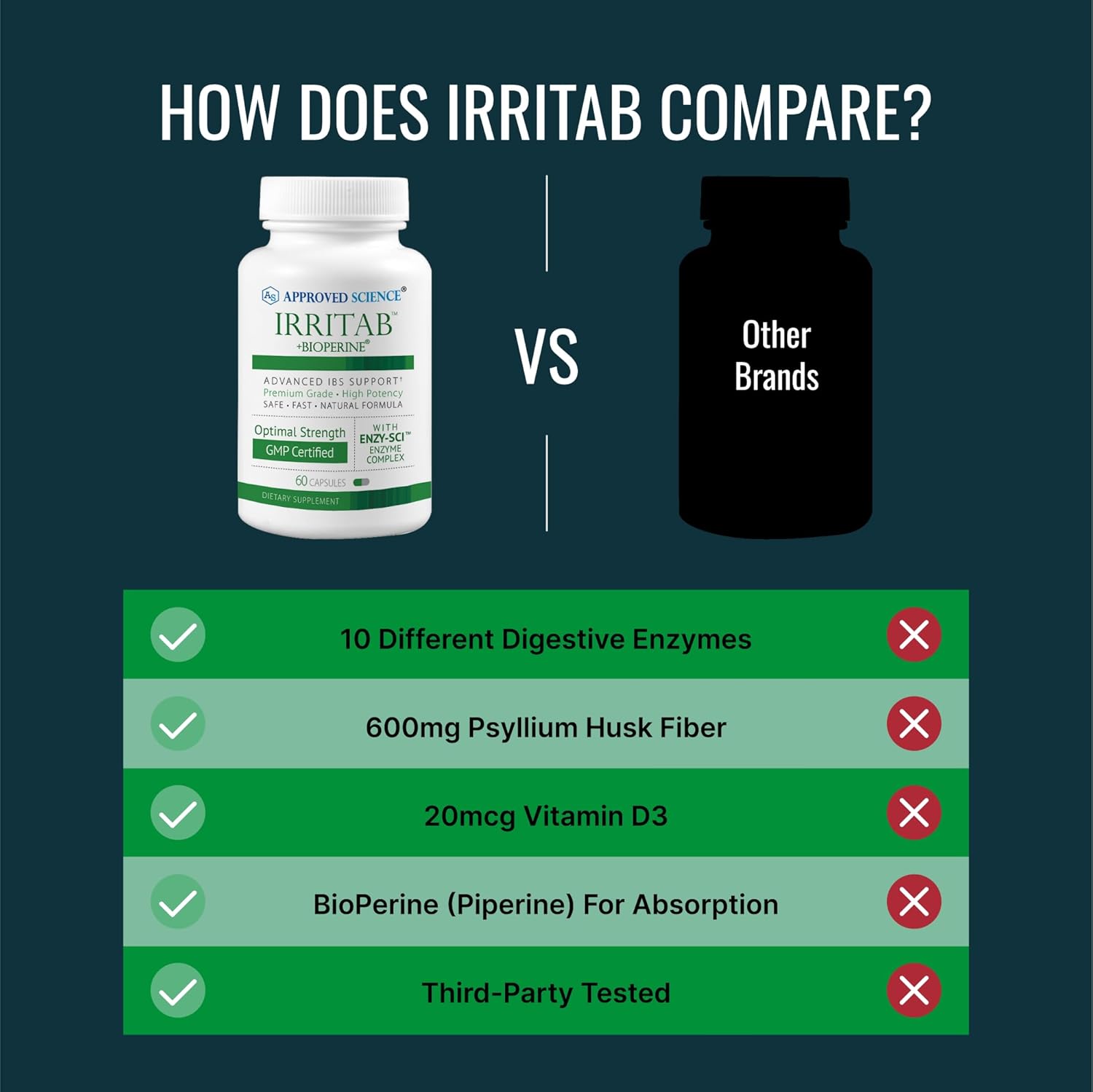 Approved Science Irritab - Natural Digestive Enzyme Support - Total Support - 6 Month Supply