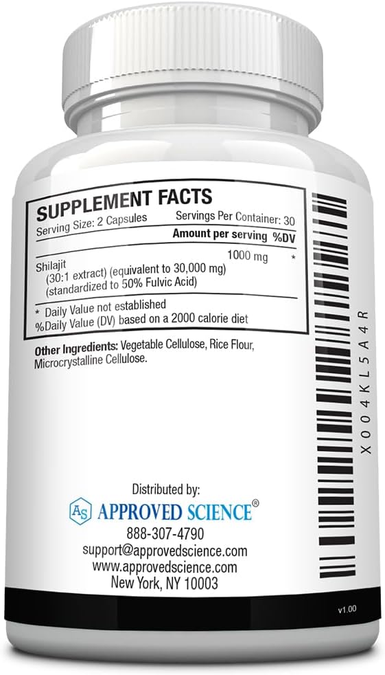 Approved Science Pure Himalayan Shilajit - 50% Fulvic Acid - 30:1 Extract (Equivalent To 30,000Mg) - 180 Vegan Capsules - High-Potency Supplement