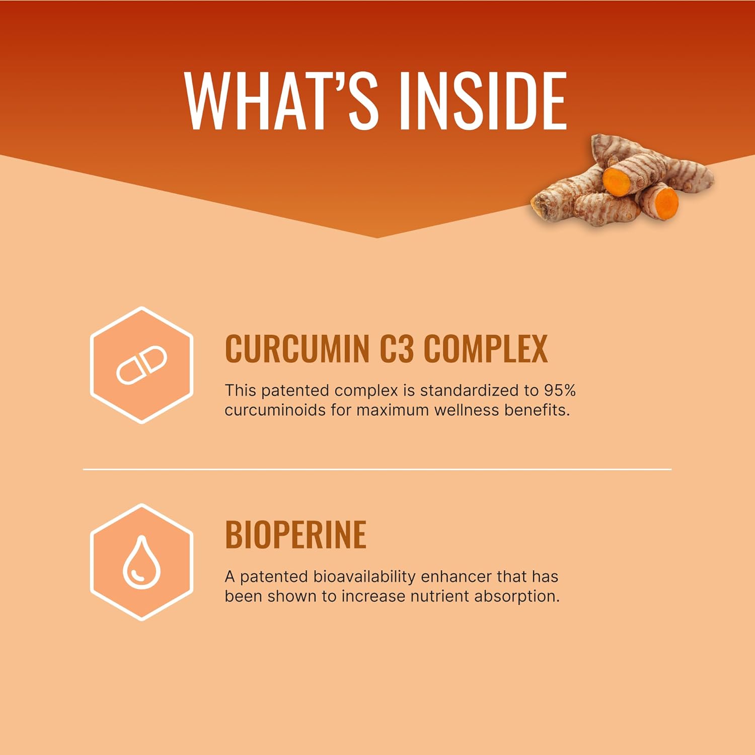 Contains C3 complex turmeric curcumin which is standardized to contain 95% Curcuminoids. Curcuminoids are the active ingredients in turmeric