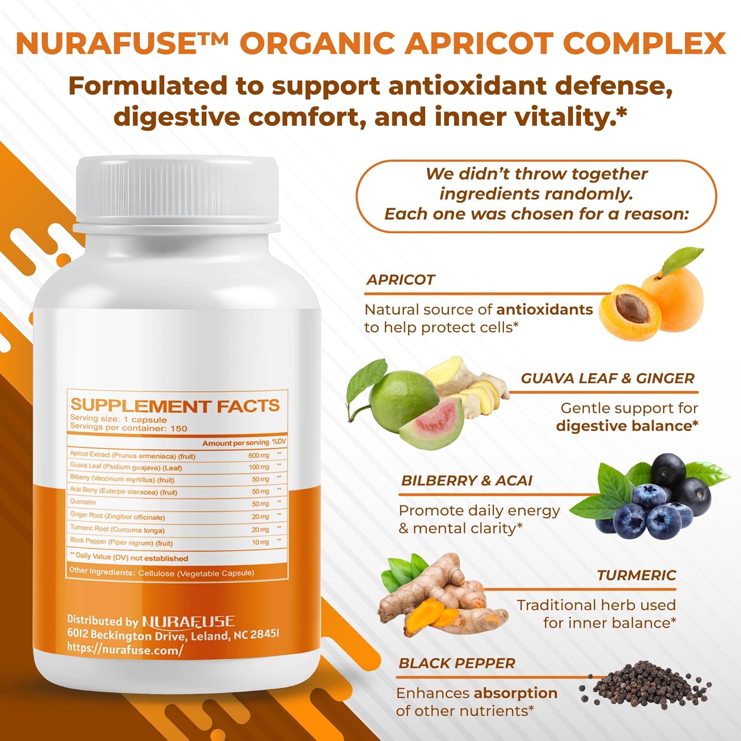 Apricot, Amla, Bilberry – Rich In Antioxidants, Supports Anti-Aging & Digestive Health – With Acai Berry, Quercetin, Ginger, Turmeric & Black Pepper – 150 Capsules