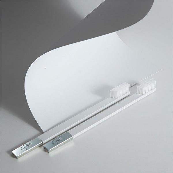 Classic white with silver accents, co-designed with dental experts. Apriori's unique design ensures a gentle yet effective brushing experience. Elevate your routine sustainably