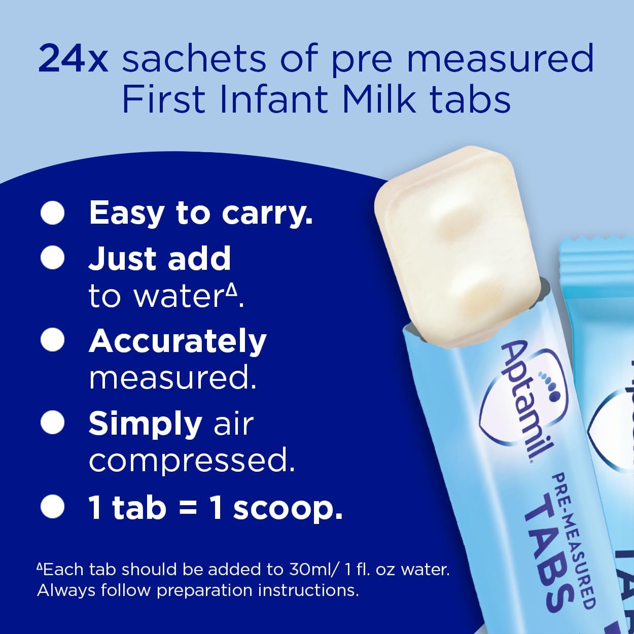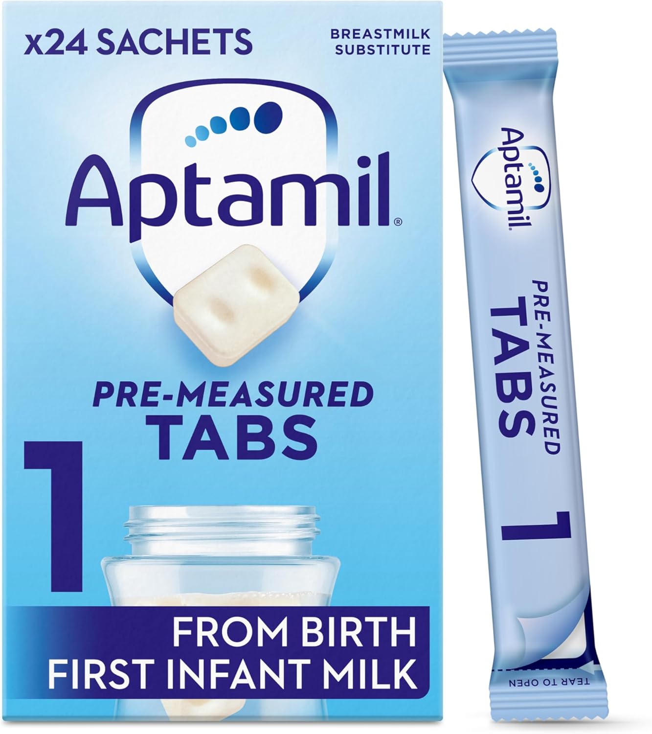 Aptamil 1 First Baby Milk Formula Pre-Measured Tabs, From Birth, 120 Tabs (Pack Of 4) - 1 Tab = 1 Scoop (23G)