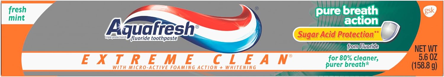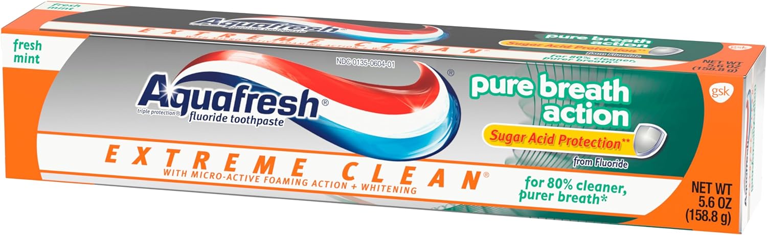 Aquafresh Extreme Clean Pure Breath Fluoride Toothpaste for Cavity Protection, 5.6 ounce (pack of 12)