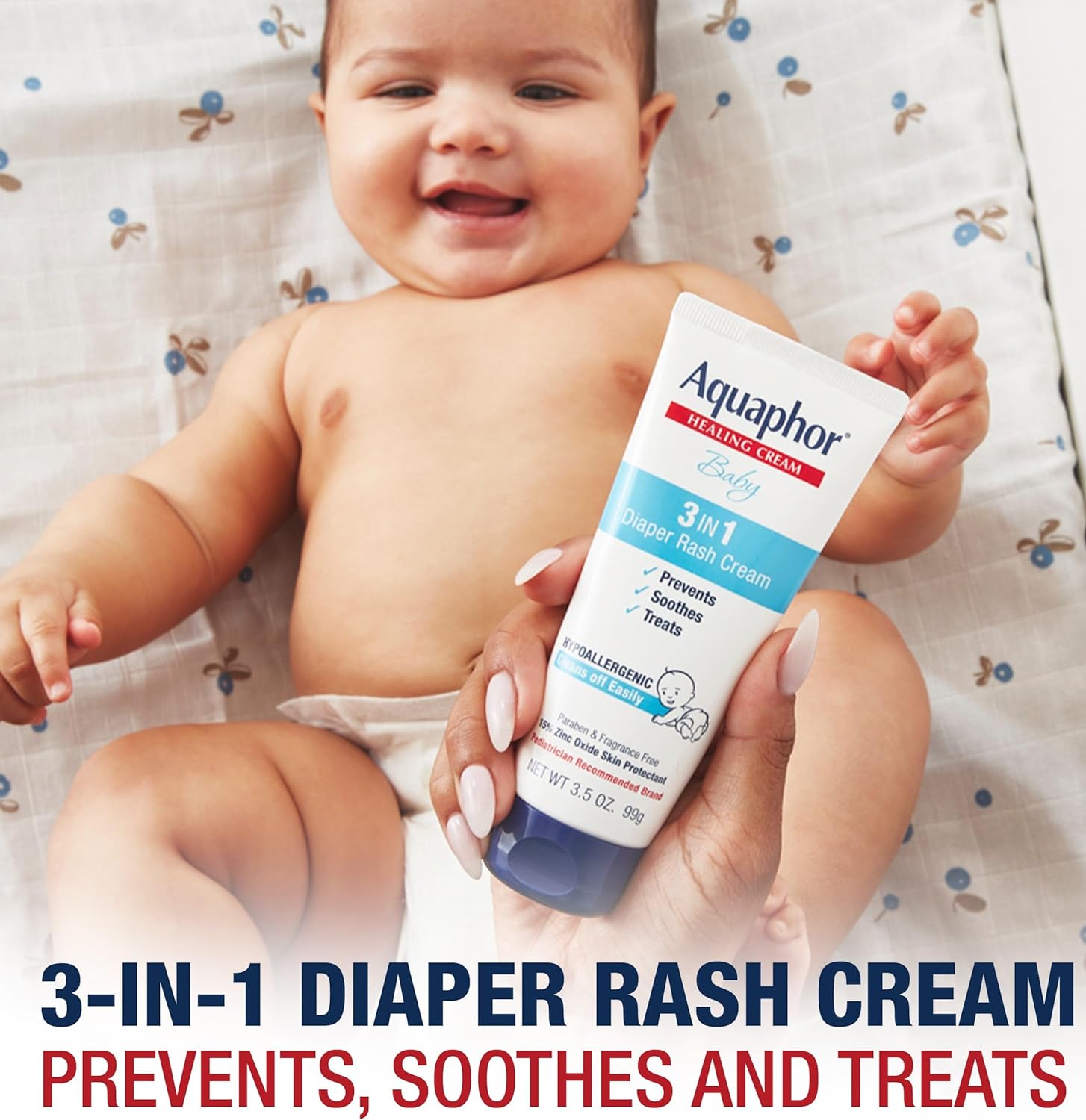 The Aquaphor Baby Skincare Gift Set features the essentials parents need to take care of their baby’s sensitive skin from Aquaphor Baby—the brand that is loved by moms and recommended by pediatricians. Aquaphor Baby Skincare Essentials Gift Set includes Aquaphor Baby 2-in-1 Wash and Shampoo (16.9oz), Aquaphor Baby Healing Ointment (7oz), and Aquaphor Baby 3-in-1 Diaper Rash Cream (3.5oz). Our Aquaphor Baby Wash and Shampoo uses a mild, tear free shampoo formula and gently cleanses baby's skin and scalp without drying. Aquaphor Baby Healing Ointment (Skin Protectant) is one essential solution for baby’s many skincare needs, including dry, chapped, and irritated skin. Aquaphor Baby Diaper Rash Cream is formulated with 15% Zinc Oxide (Skin Protectant) to soothe, treat, and prevent mild to moderate diaper rash. All Aquaphor Baby formulas are hypoallergenic, fragrance and paraben free. Aquaphor Baby is a Pediatrician recommended brand. The Aquaphor Baby Skincare Essentials Gift Set is an ideal registry item and makes the perfect baby gifts for showers and parents-to-beAll the Essentials: Baby Skincare gift set includes all the baby essentials parents need to take care of their baby’s sensitive skinAquaphor Baby Skincare Essentials Gift Includes: One 16.9 oz Aquaphor Baby 2-in-1 Wash and Shampoo, one 7 oz Aquaphor Baby Healing Ointment, and one 3.5 oz Aquaphor Baby 3-in-1 Diaper Rash CreamBaby Shampoo and Body Wash: Our 2-in-1 baby body wash and shampoo is tear free, and is enriched with Chamomile essence and Provitamin B5 to soothe and cleanseBaby Healing Ointment: Provide extra gentle care for your baby’s tender and delicate skin by applying Aquaphor Baby Healing Ointment to irritated and chapped skin from teething, drool rash and more