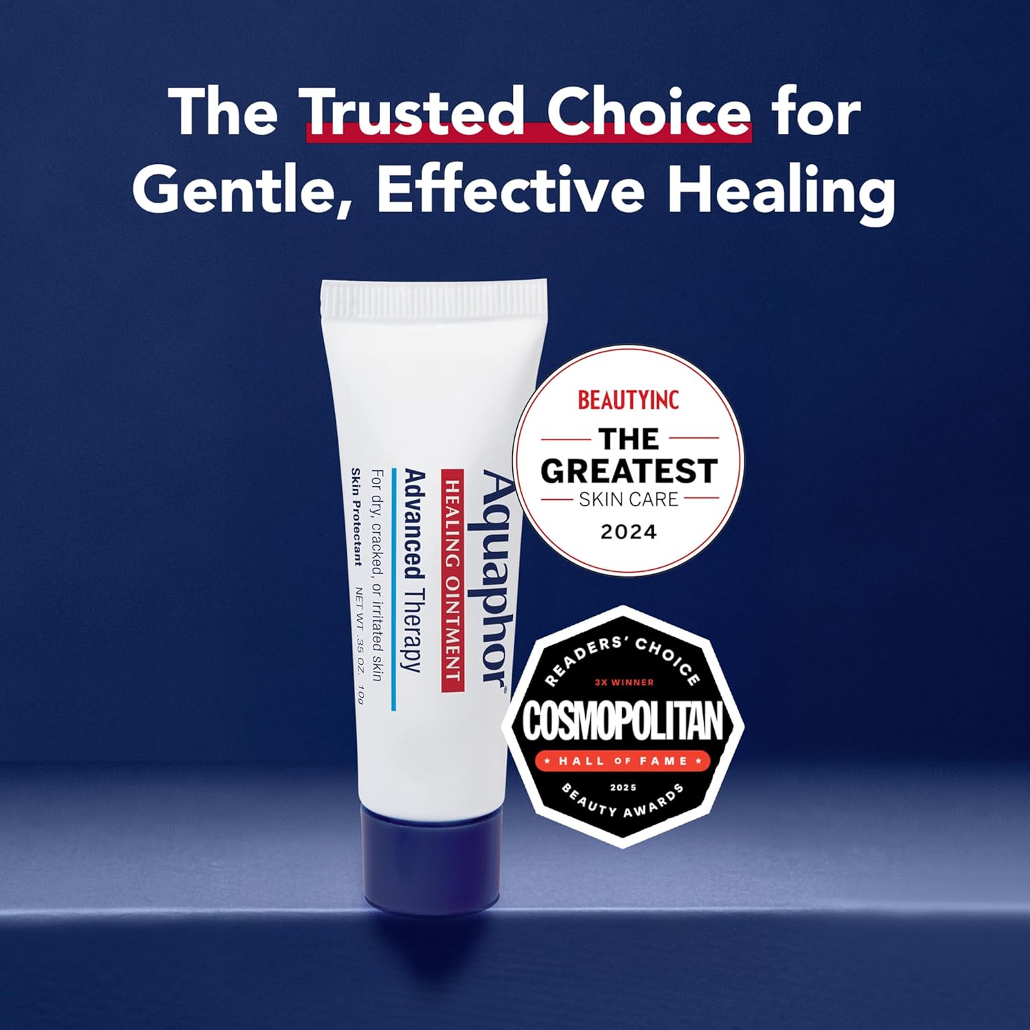 Aquaphor Healing Ointment Advanced Therapy Skin Protectant Is A Multi-Purpose Solution For Many Skincare Needs. This Body Moisturizer Ointment Is Ideal For Dry, Compromised Skin And Is Clinically Proven To Restore Smooth, Healthy Looking Skin. Aquaphor Is The #1 Dermatologist Recommended Brand For Dry, Cracked Skin And Minor Wound Care (1), And This Dry Skin Ointment Soothes And Helps Protect Skin To Enhance Healing From Skin Irritations Such As Minor Cuts And Burns, Cracked Cuticles And Dry Feet, Heels, Hands And Lips. Aquaphor Healing Ointment Can Also Help Prevent Chafing And Protect Skin From Drying Effects Of Wind And Cold Weather. This Skin Ointment Creates A Protective Barrier On The Skin That Also Allows For The Flow Of Oxygen And Excess Fluid To Create An Ideal Healing Environment. This Unique Ointment Is Formulated With Petrolatum (Skin Protectant) Plus Provitamin B5, Bisabolol, Glycerin And Lanolin Alcohol To Protect, Soothe And Moisturize Skin So You Can Get On With Your Day Comfortably. Each Of The Ingredients In Aquaphor Skin Care Products Are Tested And Approved For Their Quality And Safety, And Suitability For Dry, Compromised Skin. (1) Provoice Survey, January 2017