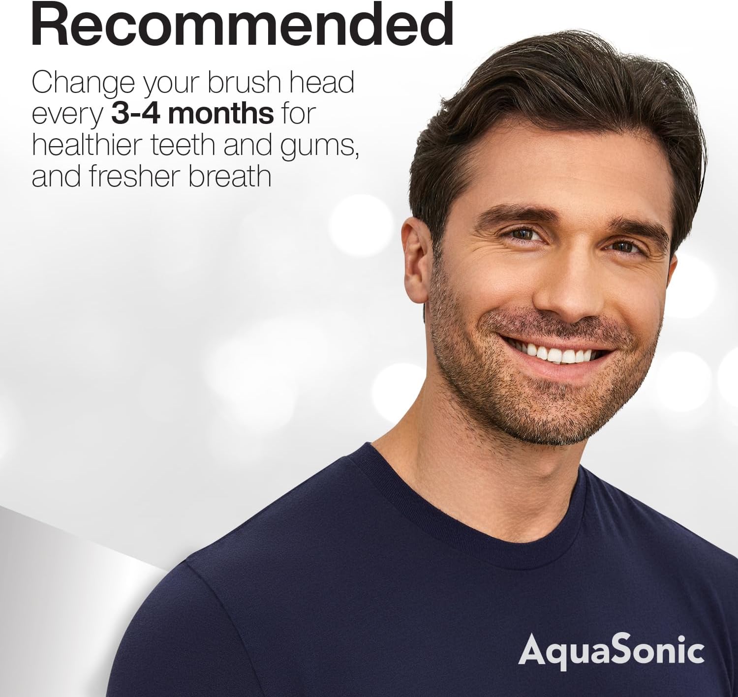RECOMMENDATIONS: Replacing your brush head is easy and takes just seconds, ensuring that your AquaSonic toothbrush stays in top condition. Change your brush head every 3 months for optimal brushing performance. Change your brush head sooner if it becomes worn. Make sure to rinse bristles well after each use