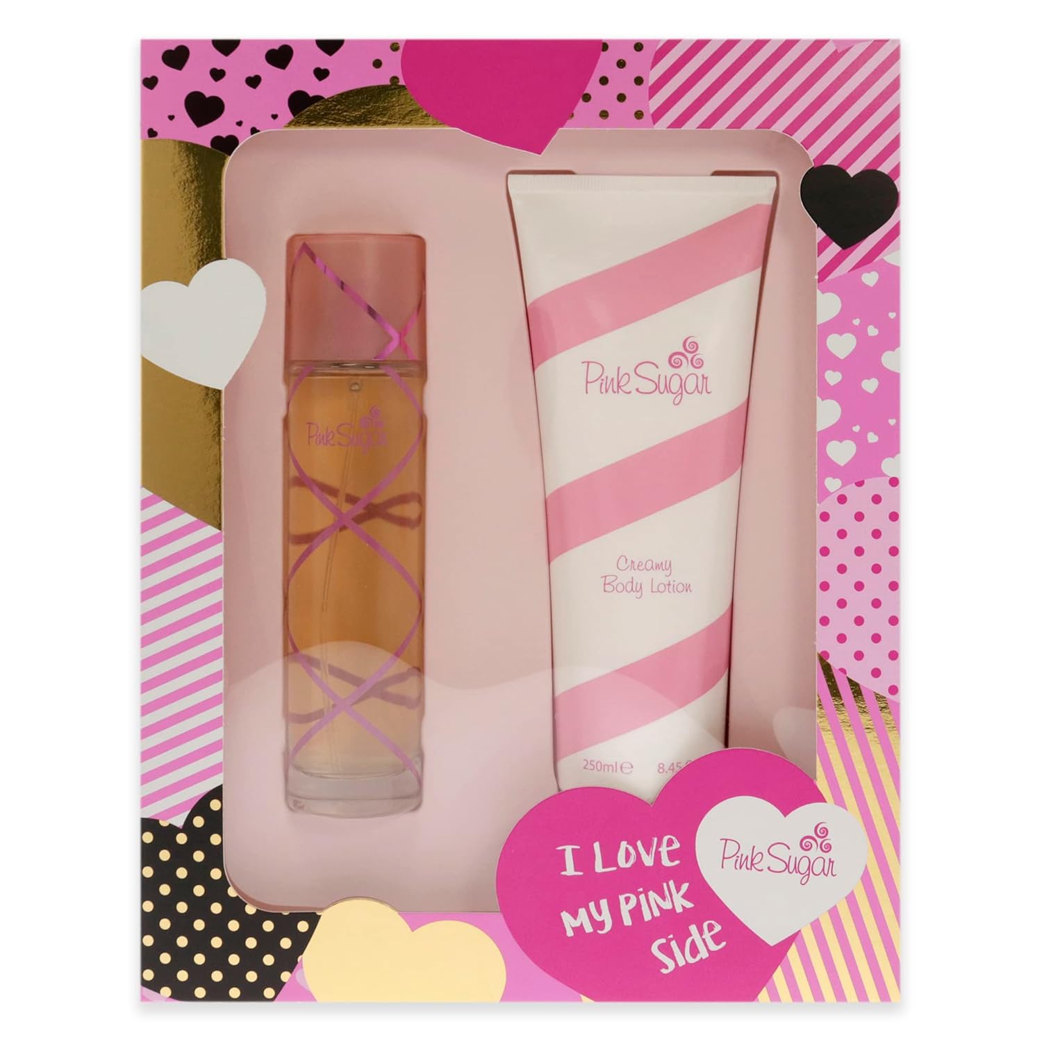 Aquolina Pink Sugar For Women 2 Pc Gift Set 3.4 Oz Eau De Toilette Spray, 8.45 Oz Creamy Body Lotion, Fresh Scent