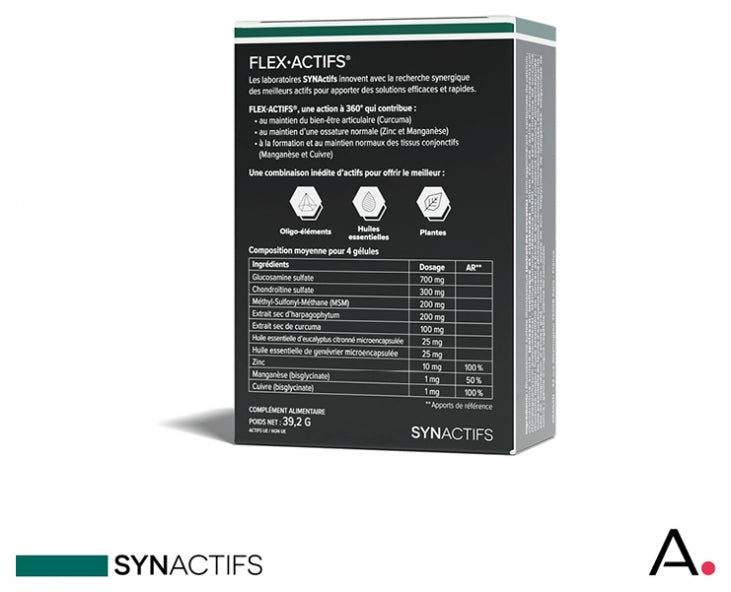 Aragan Synactifs Flexactifs 60 Capsules Is A Dietary Supplement Combining Highly Concentrated Dry Plant Extracts, Trace Elements And Microencapsulated Essential Oils For A 360° Action That Contributes : Maintaining Joint Well