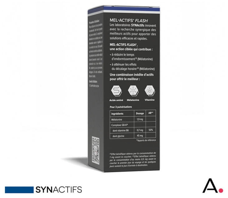 Aragan Synactifs Melactifs Spray 20 Ml Is A Dietary Supplement With Targeted Action That Helps : Reduce The Time It Takes To Fall Asleep* (Melatonin), Reduce The Effects Of Jet Lag** (Melatonin). It Contains A Combination Of Active Ingredients: Amino Acids, Melatonin And Vitamins, Offering The Very Best. *Beneficial Effect Obtained By Taking 1 Mg Before Bedtime. **Beneficial Effect Obtained By Taking At Least 0.5 Mg Before Bedtime On The First Day Of Travel And For A Few Days After Arrival At Destination. Made In France