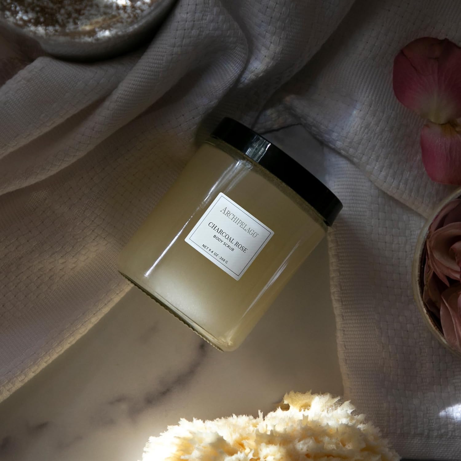 Archipelago Botanicals Charcoal Rose Body Scrub, Exfoliating Body Scrub For Rejuvenated, Smooth And Glowing Skin, Made With Natural Ingredients, Blended With Charcoal (9.4 Oz)