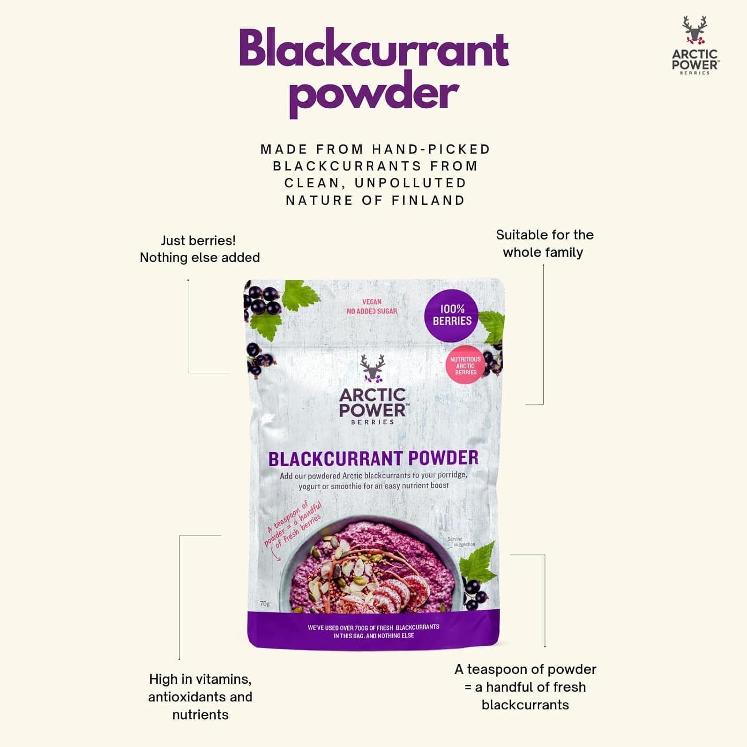 Arctic Power Berries 100% Blackcurrant Powder 70G, Nutrient Rich Nordic Blackcurrants, Delicious Nutrient Boost For Breakfast Bowls, Smoothies, Porridge, Yogurt - Vegan, No Added Sugar