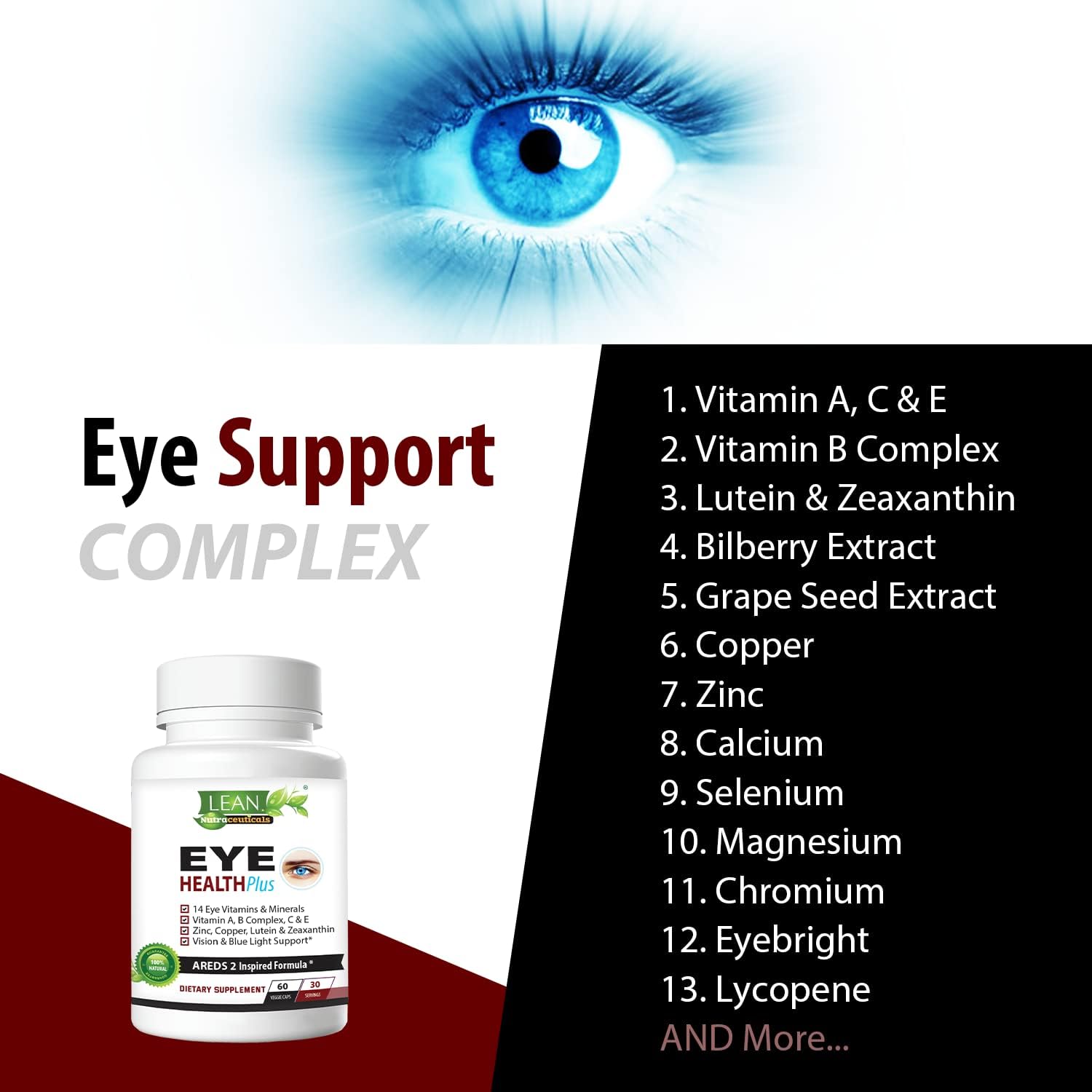 About this item ULTIMATE FULL EYE SUPPORT: Eye supplements for adults to support overall eye health, eye aging, eye fatigue, eye strain, eye dryness, eye glare and night vision. Protect eyes from blue lights of digital devices EYE CARE SUPPLEMENT OF AREDS 2 FOEMULA: Eye supplements with areds 2 eye nutritions, minerals, and eye vitamins lutein & zeaxanthin based on the Age Related Eye Disease Study 2 COMPLEX OF OCULAR SUPPLEMENTS: With vitamin A, B1, B2, B3, B12, C, E, Biotin, Copper, Zinc, Calcium, Magnesium, Selenium, Chromium, Lutein & Zeaxanthin, Bilberry extract for eyes, Grape Seed Extract, Quercetin, Eyebright, Rutin, Lycopene, ALA, L-Taurin SIGHTCARE EYE SUPPLEMENT: Sight care pills to support ocular & retinal health, eye aging & daily stress on eyes. Premium vision supplement and eye health supplements for adults VEGAN KETO PALEO: Manufactured in the USA in a cGMP compliant facility. 3rd party tested for purity and potency. Gluten Free. NO: GNO, nuts, gluten, milk, egg, wheat, shellfish › See more product details,ULTIMATE FULL EYE SUPPORT: Eye supplements for adults to support overall eye health, eye aging, eye fatigue, eye strain, eye dryness, eye glare and night vision. Protect eyes from blue lights of digital devices,EYE CARE SUPPLEMENT OF AREDS 2 FOEMULA: Eye supplements with areds 2 eye nutritions, minerals, and eye vitamins lutein & zeaxanthin based on the Age Related Eye Disease Study 2,COMPLEX OF OCULAR SUPPLEMENTS: With vitamin A, B1, B2, B3, B12, C, E, Biotin, Copper, Zinc, Calcium, Magnesium, Selenium, Chromium, Lutein & Zeaxanthin, Bilberry extract for eyes, Grape Seed Extract, Quercetin, Eyebright, Rutin, Lycopene, ALA, L-Taurin,SIGHTCARE EYE SUPPLEMENT: Sight care pills to support ocular & retinal health, eye aging & daily stress on eyes. Premium vision supplement and eye health supplements for adults,VEGAN KETO PALEO: Manufactured in the USA in a cGMP compliant facility. 3rd party tested for purity and potency. Gluten Free. NO: GNO, nuts, gluten, milk, egg, wheat, shellfish