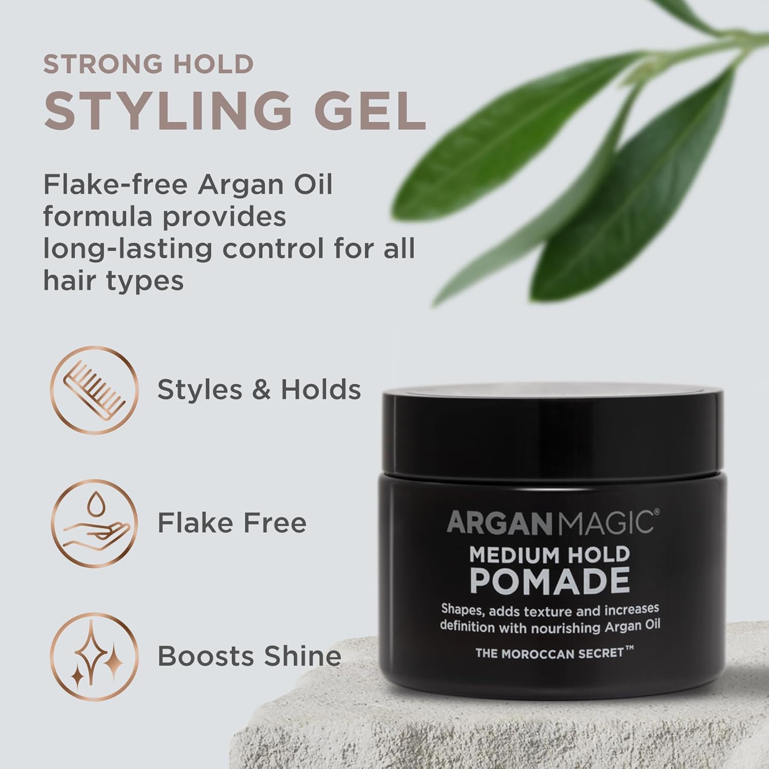 Argan Magic Medium Hold Pomade With Argan Oil | Shapes, Adds Texture, Increases Definition | Made In Usa, Paraben Free, Cruelty Free (8 Oz)