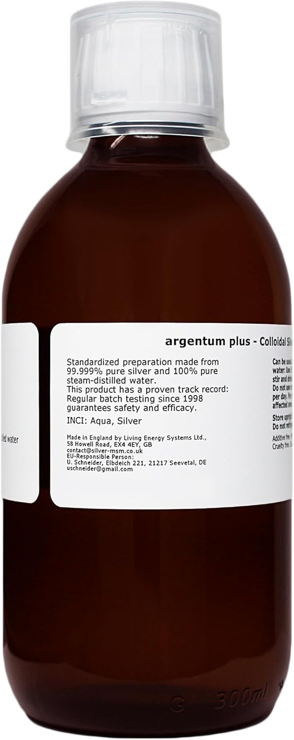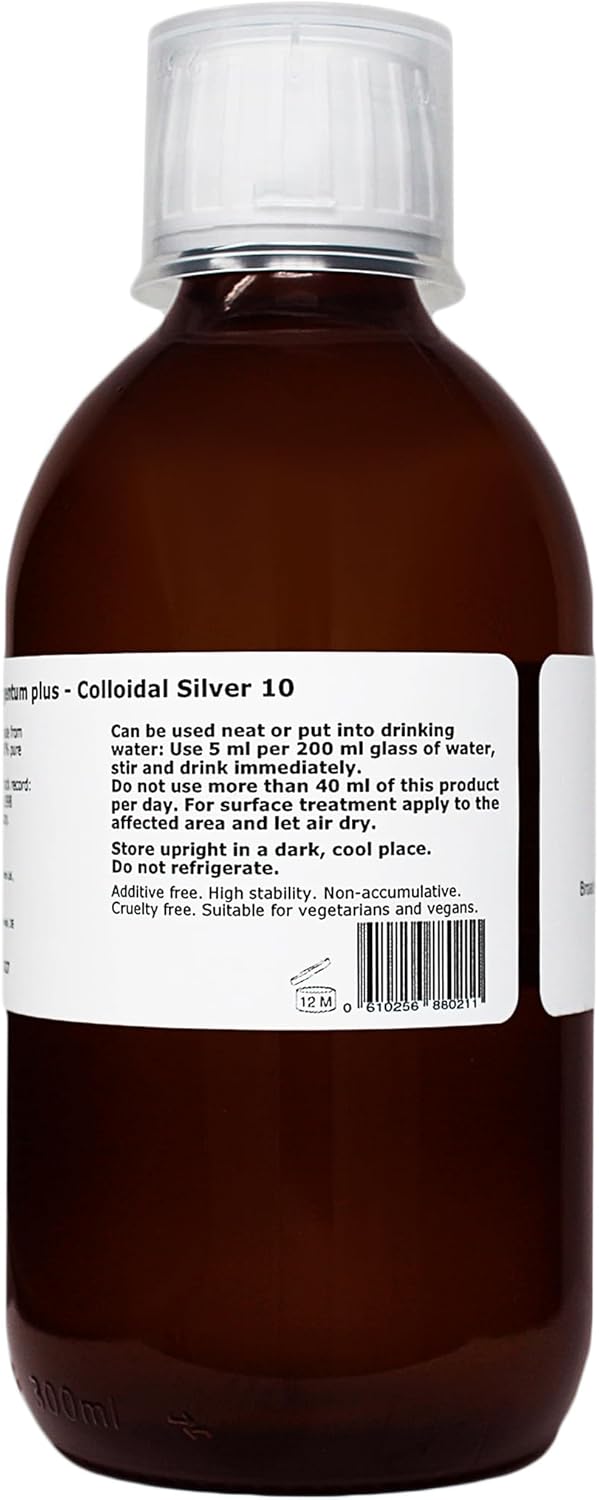 Argentum Plus - Colloidal Silver 10 Ppm - 300 Ml - Clear Liquid In Amber Glass Bottle