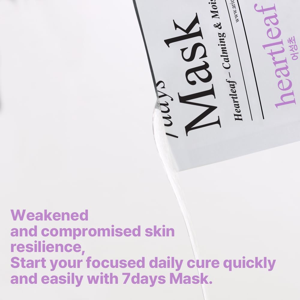 Ariul 7 Days Mask Heartleaf P β Calming & Moisturizing Korean Face Mask With Panthenol & Ceramide, Hydrating & Soothing, Pore Purifying, Vegan Sheet, 10 Masks, 23Ml / 0.77 Fl. Oz Each