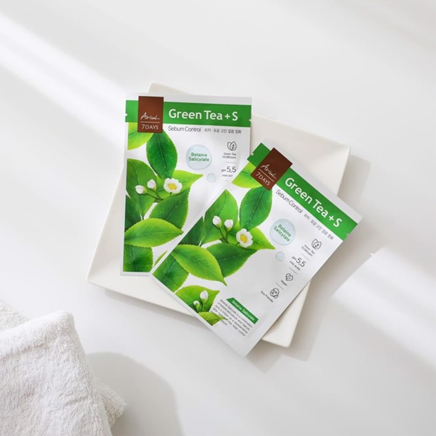 Ariul 7 Days Mask Heartleaf P β Calming & Moisturizing Korean Face Mask With Panthenol & Ceramide, Hydrating & Soothing, Pore Purifying, Vegan Sheet, 10 Masks, 23Ml / 0.77 Fl. Oz Each (Green Tea S)