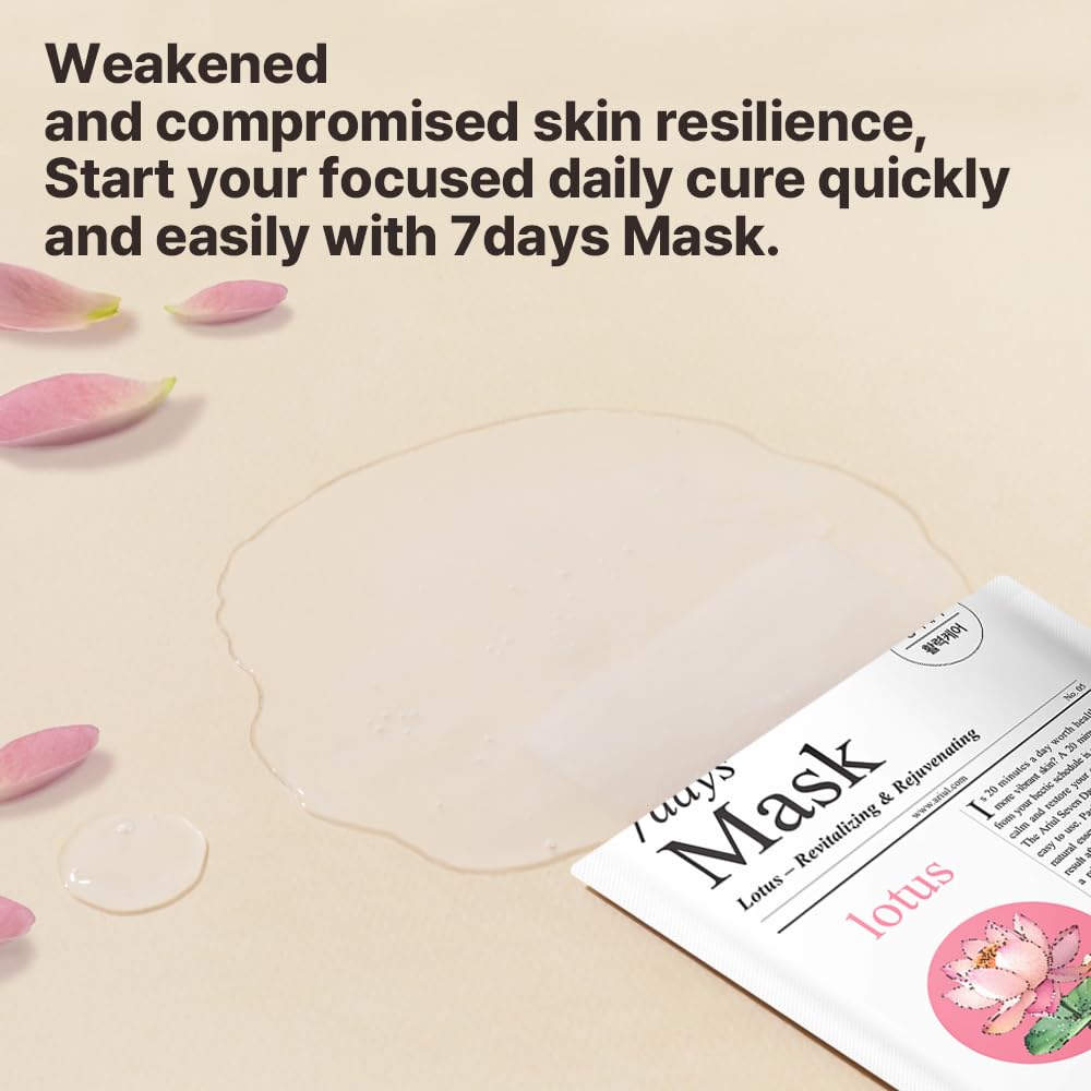 Ariul Sheet Mask New Seven Days Daily Care Essential Mask 10 Pack (Lotus N) Vitality, Energy | Korean Skincare Facial Moisturizing