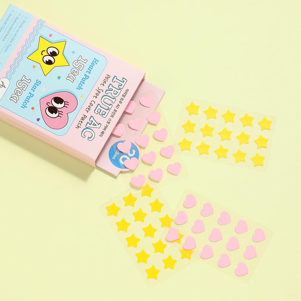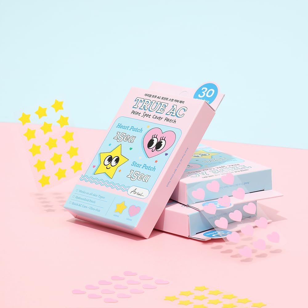 Ariul True Ac Spot Cover Duo Set β Before & After Blemish Care, Hydrocolloid Patch With Salicylic Acid, Niacinamide, Tea Tree Oil & Cica, Ultra-Thin, Korean Skin Care (Pink - Heart & Star)