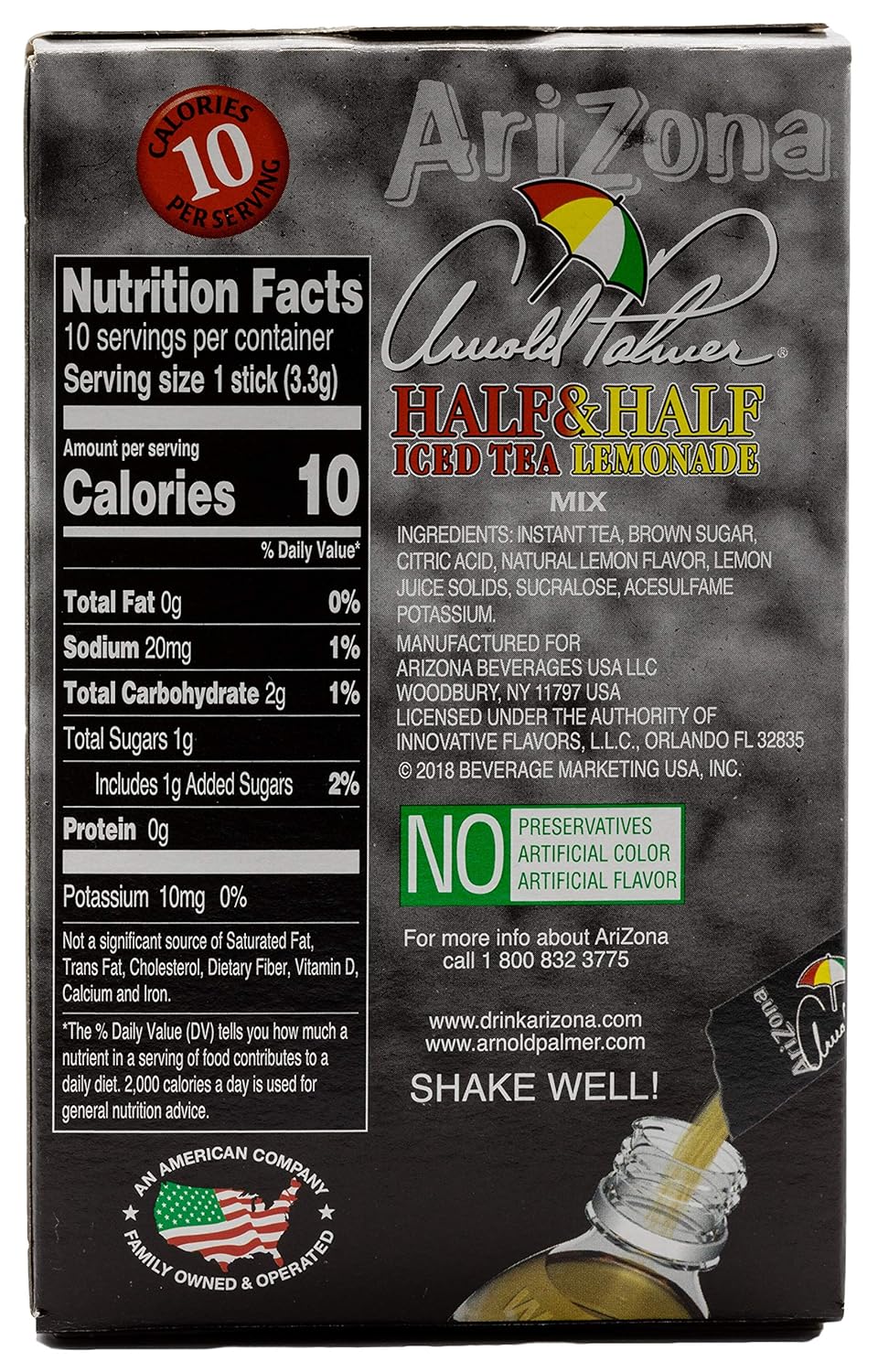 The Name āArnold Palmerā Has Legendary Roots As An Original Beverage Combination Of Half Iced Tea And Half Lemonade, Widely Known For Its Refreshing Taste And Ability To Revive The Senses After A Competitive Round Of Golf. Arizona And Arnold Palmer Have Teamed Up To Bring You The Half & Half Taste In A New Low Calorie On-The-Go Powder Mix. Add It To 16Oz Or 20Oz Bottle Of Water, Shake And Enjoy! If Only Playing Golf Was That Easy!