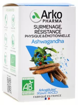 Arkopharma Arkocaps Ashwagandha Organic 60 Capsules Is A Food Complement Containing Ashwagandha Which Helps The Organization To Maintain Its Physical And Mental Capacities To Better Resist The Stress, In Particular In The Event Of Overwork. 100% Vegetable Capsules, Without Chemical Coloring Or Additives. Gluten Free. Certified Organic Farming. Control Fr-Bio-01. Vegan. Made In France