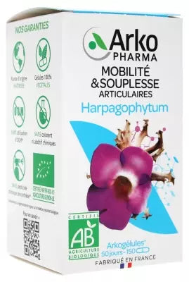 Arkopharma Arkocaps Harpagophytym Organic 150 Capsules Is A Food Supplement Based On Harpagophytum, Which Helps To Maintain A Good Joint Health By Contributing To The Mobility And Suppleness Of Joints. The Capsules Are 100% Vegetable, Dye Free And Without Chemical Additive . They Are Guaranteed Without The Use Of Gmos And Without Synthetic Chemical Pesticides, In Accordance With The Regulations In Force. Certified Organic Farming. Control Fr-Bio-01. Vegan. Made In France