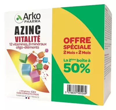 Arkopharma Azinc Vitality Lot Of 2 X 120 Capsules Special Offer