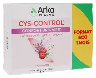 Arkopharma Cys-Control Urinary Comfort 60 Capsules Is A Food Supplement Based On Cranberry And Heather Extracts. It Provides 36 Mg Of Total Proanthocyanides (Pacs) Per Day. Heather Contributes To The Body'S Elimination Functions And Promotes Good Urinary Comfort. Titanium Dioxide Free. Dye Free. Made In France