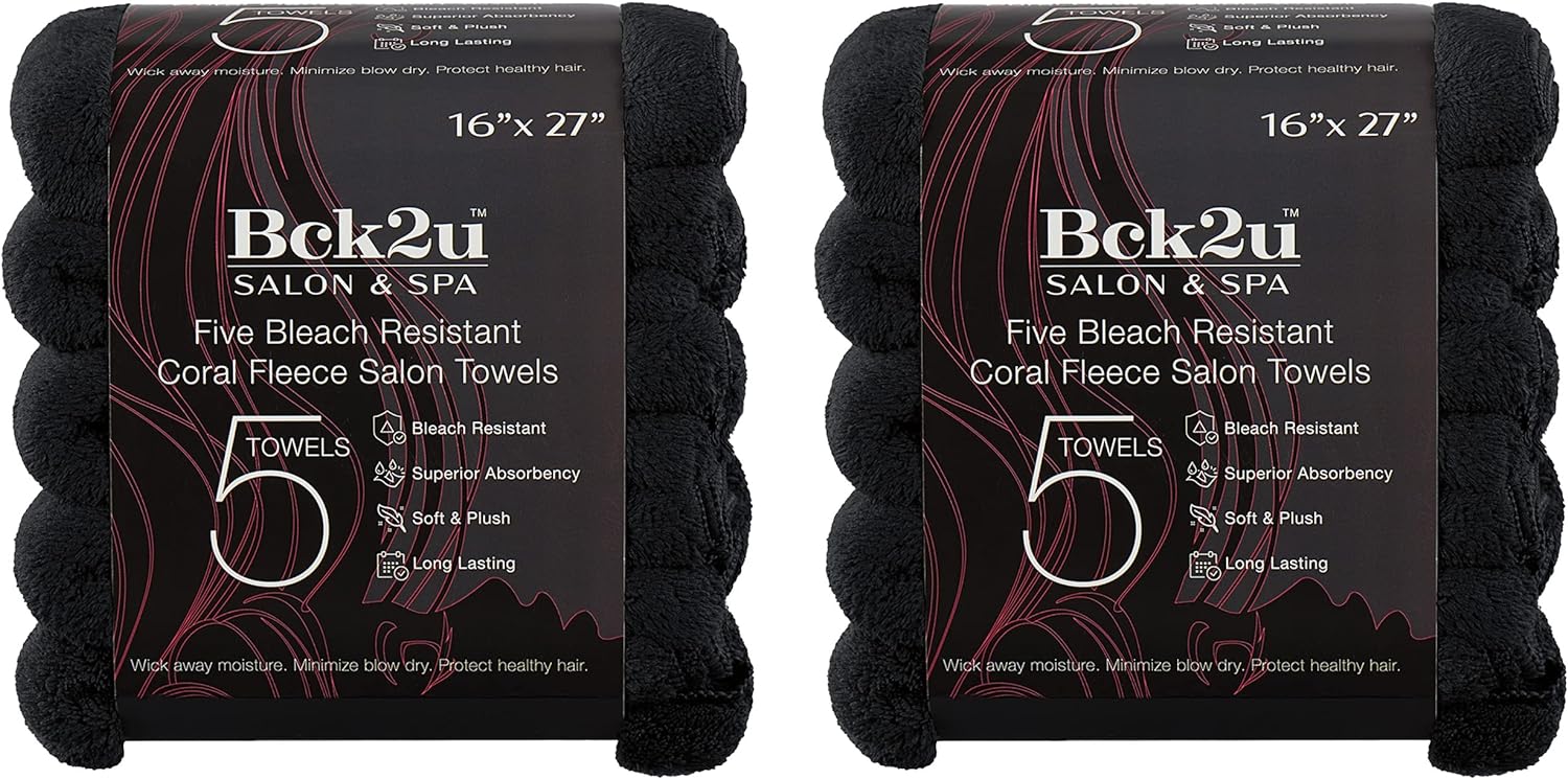 Arkwright Microfiber Coral eece Salon Towels - (Pack of 10) Bleach Safe Resistant, Absorbent Hair Drying Towel Set, Perfect for Resort, Hotel, and Spa, 16 x 27 in, Black