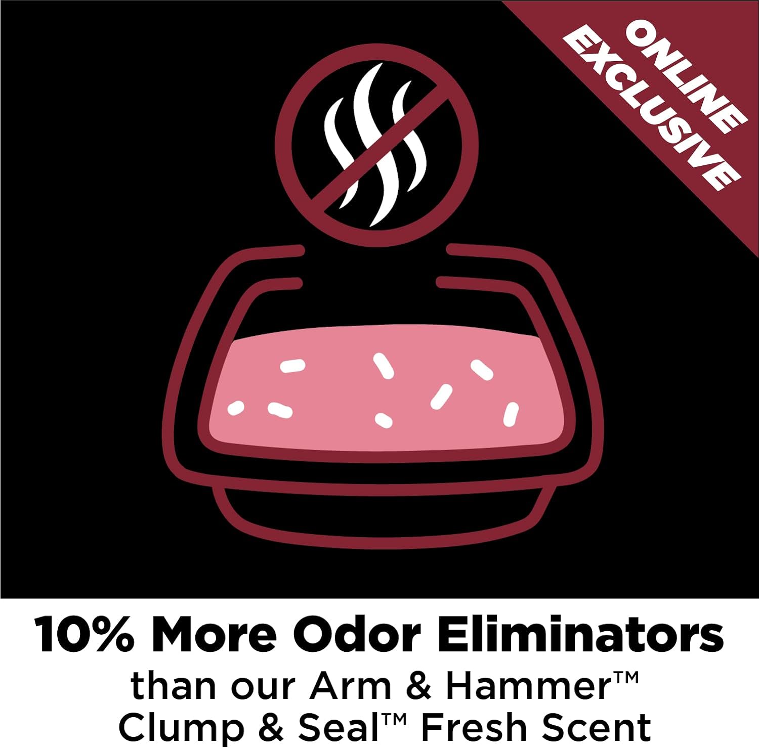 A lot can happen in a week, but smelling your cat’s litter box shouldn’t be one of them. Our patented-formula ARM & HAMMER litter can absorb, seal, and destroy cat litter-box odors on contact and is effective enough to be used in a multiple-cat litter box. Moisture-activated Micro-Granules form a tight seal around odor and destroy it, while the litter helps create rock-solid cat litter clumping. With 10% more cat-odor eliminators plus ARM & HAMMER baking soda, your kitty’s box can stay fresh for up to 14 days. This ARM & HAMMER cat litter is easy to use and change. Simply fill 3–4 inches of your kitty litter box, scoop away the clumps, and refill the box back to the 3–4-inch mark. Empty your litter box into the garbage only when it is time to change the box. At ARM & HAMMER we respect all living things, especially animals and pets because they rely on us. We focus on product quality and customer satisfaction while embracing a corporate duty to respect the environment and natural resourcesPLATINUM CLUMP & SEAL CAT LITTER: This odor-sealing clumping cat litter is so effective; it can keep cat odors under control for up to 14 days. It’s strong enough to be used as a multi-cat litter and forms rock-hard clumps for easy scoopingCOMPLETE ODOR-SEALING CAT LITTER: With a patented formula that can absorb, seal, and destroy cat litter-box odors on contact, this clumping litter is a complete odor eliminator for cat litter, giving you and your kitty a clean-smelling homePOWERFUL ODOR CONTROL: With 10% more odor eliminators than our regular ARM & HAMMER Clump & Seal Fresh Scent cat litter—plus ARM & HAMMER baking soda—odors don't stand a chance. Use this litter to create the ultimate multi-cat litter box!EASY TO USE: Fill your kitty litter box with 3-4 inches with this clumping cat litter. Use your cat litter scoop to take out the clumps, and refill to maintain level