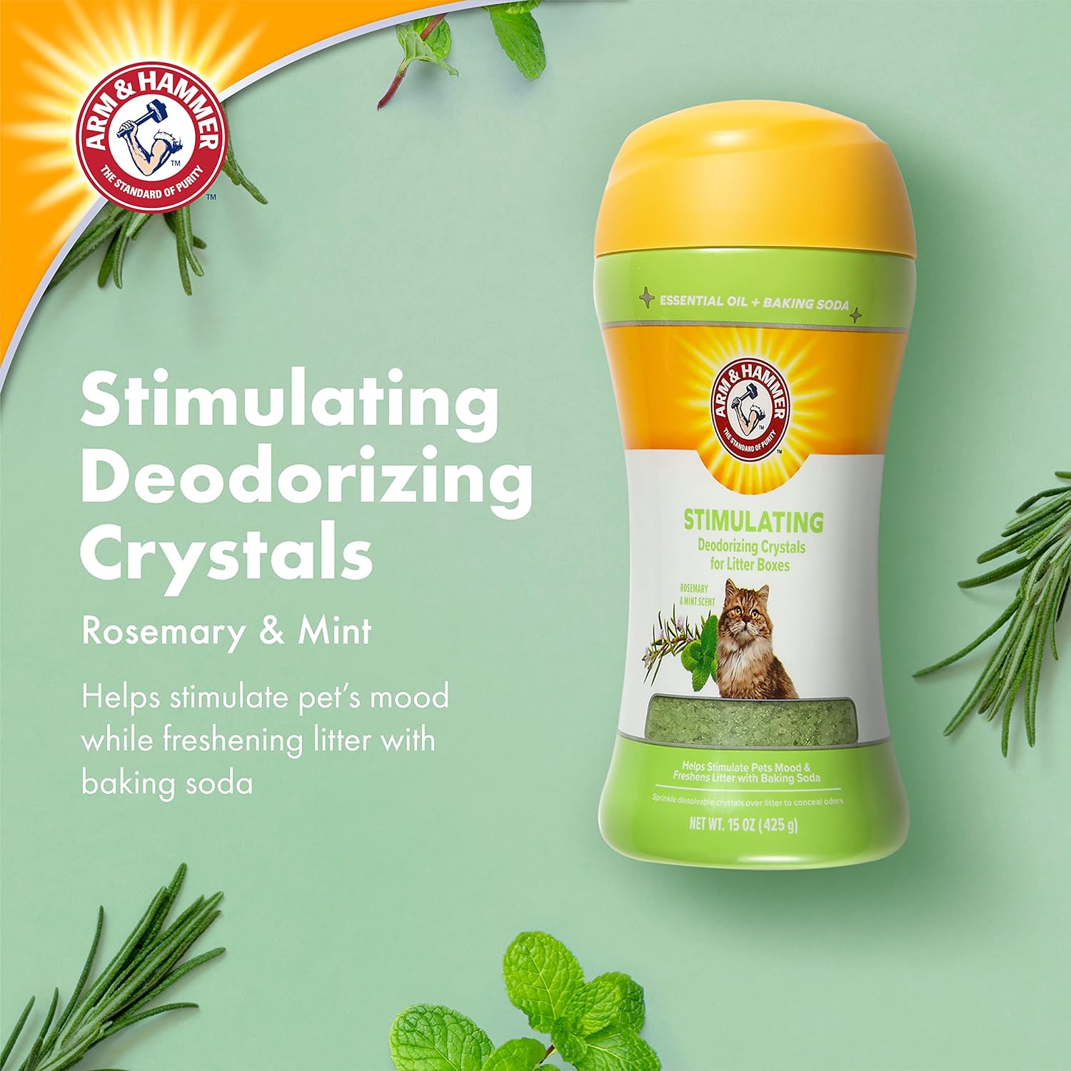 Arm & Hammer Deodorizing Cat Litter Crystals For Litter Boxes | Stimulating Odor Neutralizing Cat Litter Odor Eliminator In Rosemary & Mint Scent | Litter Box Odor Eliminator, 15 Oz