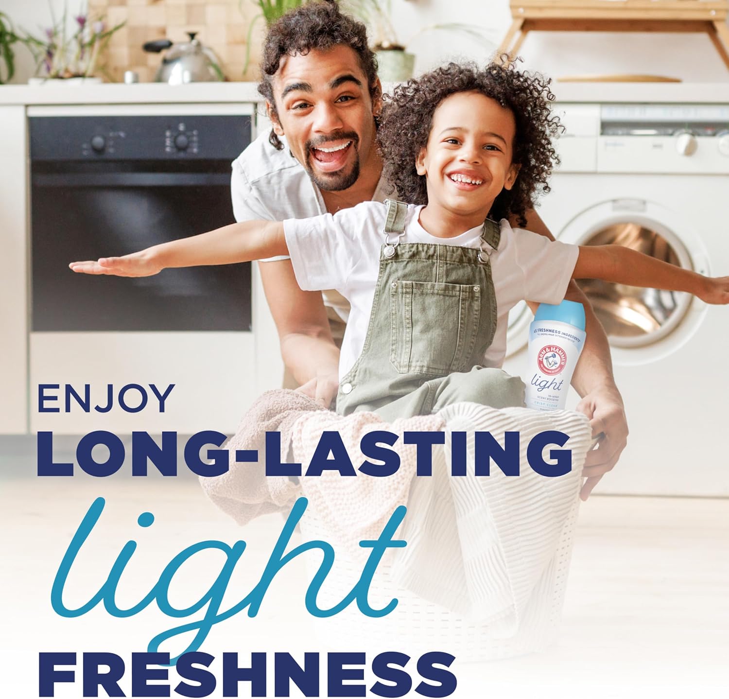 About The Product : One 24 oz container of ARM HAMMER Light In-Wash Scent Booster Laundry Crystals, long-lasting Crisp Clean scent, with no heavy perfumes, no dyes, no parabens