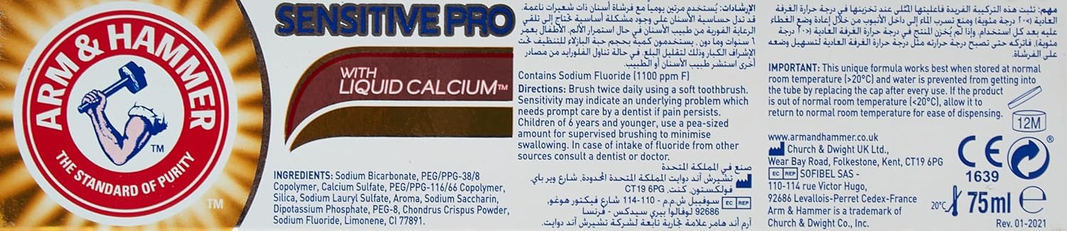 Arm & Hammer Sensitive Pro Daily Toothpaste, 75Ml (Pack Of 4)