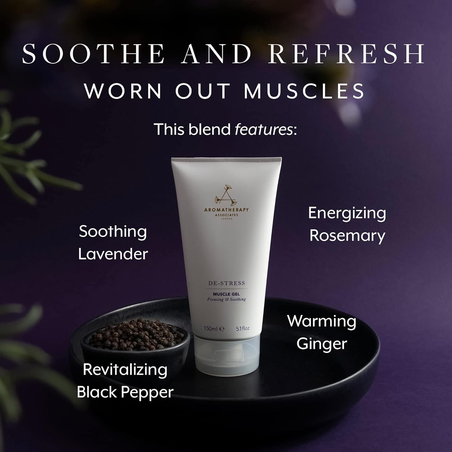DESCRIPTION : Aromatherapy Associates De-Stress Muscle Gel. Effective Gel to Soothe and Heal the Body. Blended with Rosemary, Ginger and Black Pepper Essential Oils (5.07 oz)